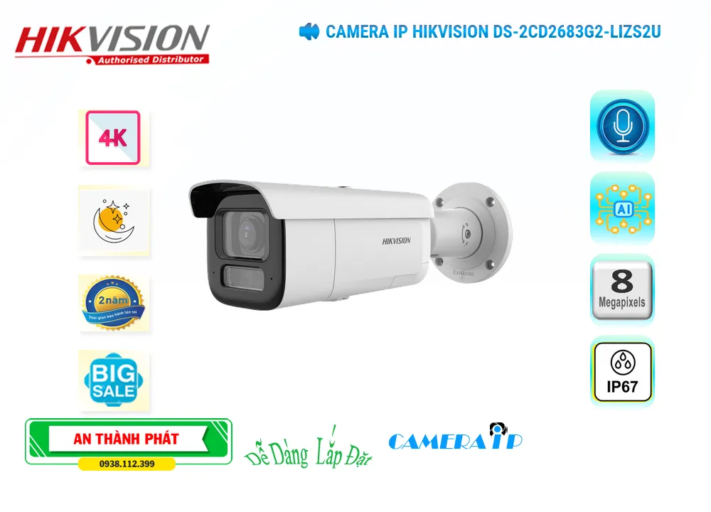 Công ty An Thành Phát là địa chỉ đáng tin cậy cung cấp Camera IP HIKVISION DS-2CD2683G2-LIZS2U chính hãng với giá cả phải chăng và dịch vụ tốt nhất tại TP.HCM. Khuyến mãi hấp dẫn khi mua Camera POE Hikvision DS-2CD2683G2-LIZS2U 8MP tại đây. An Thành Phát cam kết là đối tác đáng tin cậy cho nhu cầu của bạn.