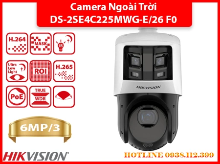 Camera DS-2SE4C225MWG-E/26 (F0) kết hợp hai ống kính: 1 ống kính toàn cảnh 6MP ColorVu 2.8mm và 1 ống kính PTZ 2MP DarkFighter zoom quang 25X. Hỗ trợ đèn trắng 30m, hồng ngoại 100m, ghi hình rõ nét trong môi trường cực tối . Tính năng WDR 120dB, chống ngược sáng, chống rung, chống sương kỹ thuật số và phát hiện khuôn mặt nâng cao hiệu quả giám sát.