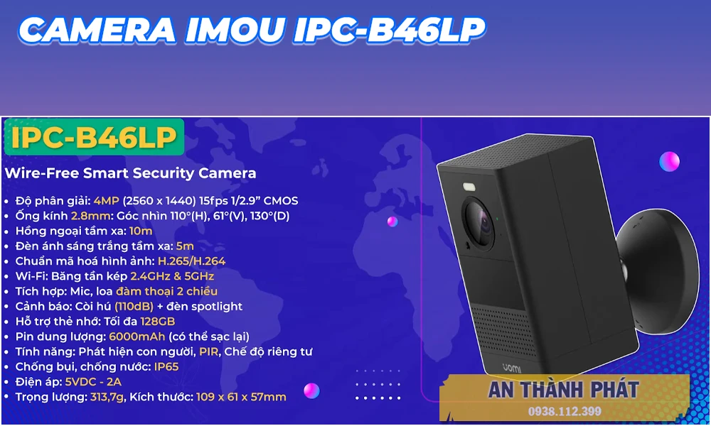 Camera Imou IPC-B46LP-White là một lựa chọn tuyệt vời cho việc bảo vệ an ninh và giám sát hiệu quả trong nhiều môi trường khác nhau. Với thiết kế không dây hoàn toàn và tích hợp pin sạc lâu dài, sản phẩm này mang lại sự linh hoạt tối đa, cho phép bạn dễ dàng lắp đặt ở bất kỳ đâu mà không cần lo lắng về nguồn điện hoặc dây kết nối.