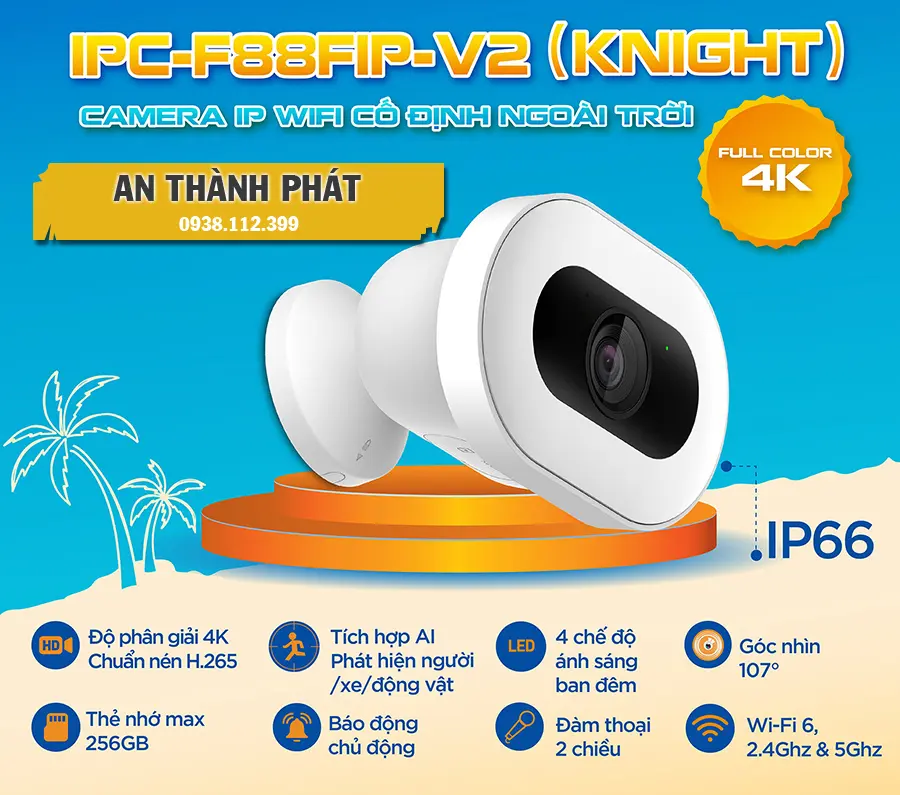 Camera IP WIFI Cố định ngoài trời Full Color 4K