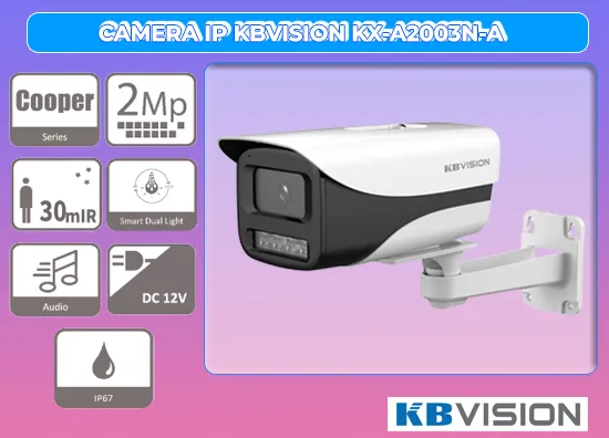 🤝 Camera KBvision KX-A2003N-A là dòng công nghệ IP với độ phân giải 2MP, hồng ngoại 80m, tích hợp mic, phát hiện con người, chống nước IP67 và chuẩn nén H.265+, phù hợp giám sát an ninh hiệu quả.