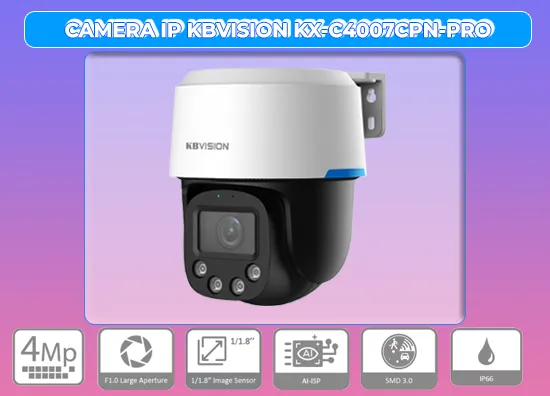 💖 Camera cấp nguồn qua dây mạng KX-C4007CPN-PRO của KBvision tích hợp công nghệ nổi bật như chất lượng hình ảnh 4K sắc nét, khả năng quan sát trong điều kiện ánh sáng yếu, tích hợp âm thanh 2 chiều, hỗ trợ thẻ nhớ, cung cấp khả năng xoay ngang 360 độ và ngả 90 độ.