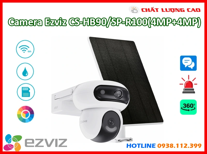 Camera Ezviz CS-HB90/SP-R100(4MP+4MP) mang đến giải pháp giám sát toàn diện nhờ công nghệ cảm biến CMOS 1/3” kết hợp độ phân giải 2K+ sắc nét.